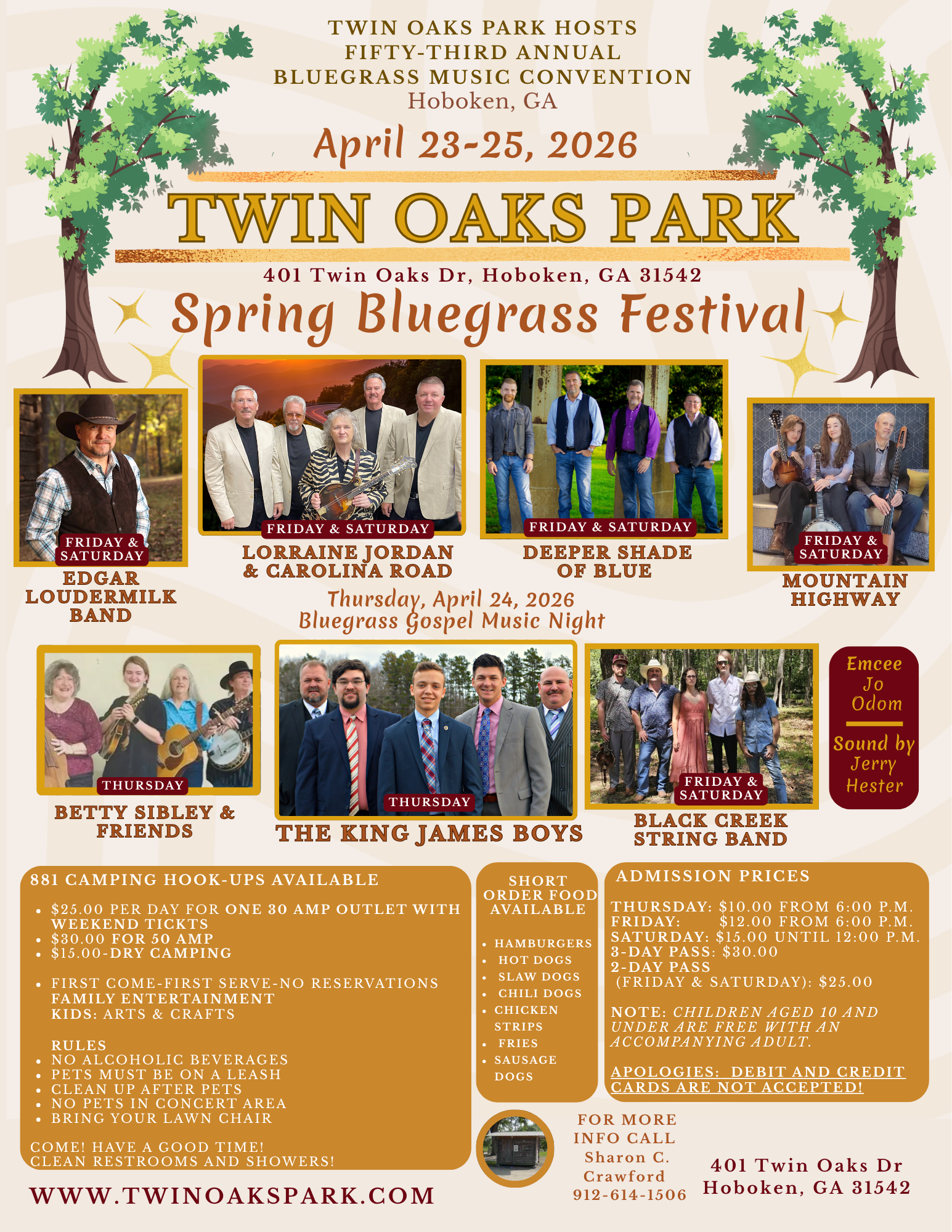 LOOK FOR SIGNS TO TWIN OAKS PARK